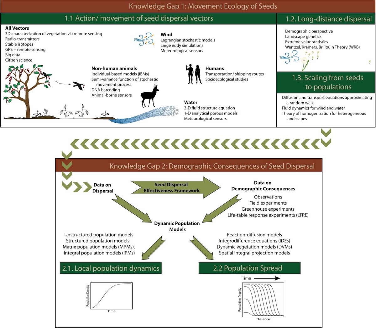 In their new viewpoint article in AoBP, Beckman et al. provide guidance on integrating empirical and theoretical approaches that account for the context-dependency of seed dispersal. This approach will help to improve our ability to generalize and predict the consequences of seed dispersal, and its anthropogenic alteration, across systems. They highlight that with an interdisciplinary perspective, we will be able to better understand how global change will impact seed dispersal processes, and potential cascading effects on plant population persistence, spread, and biodiversity.