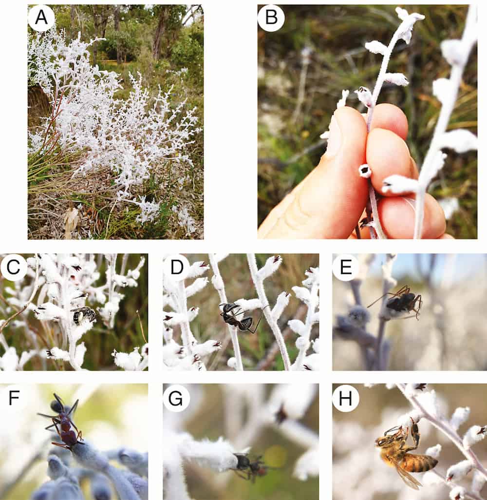 Conospermum undulatum lacks the features associated with the limited documented cases of ant pollination, such as small, open flowers, a small amount of pollen, and easily-accessible nectaries. Further study will be needed to better understand this system and how the plant may have co-evolved to allow pollination by ants despite their secretions. “This [result] highlights the complexity of ant–flower interactions and reinforces the fact that our understanding of these systems is still in its infancy,” write the authors. “In addition, we demonstrated that C. undulatum has a highly specialized pollination mutualism with a native Leioproctus bee. Identification of such specific pollination associations are important for management of threatened species to ensure maintenance of effective pollination services to ensure long-term population viability.”