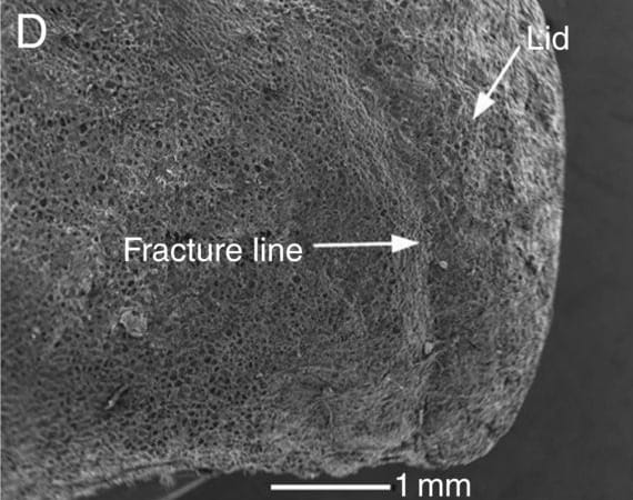 External and internal structure of Persoonia longifolia endocarps and seeds. SEM image of the endocarp fracture line. Image