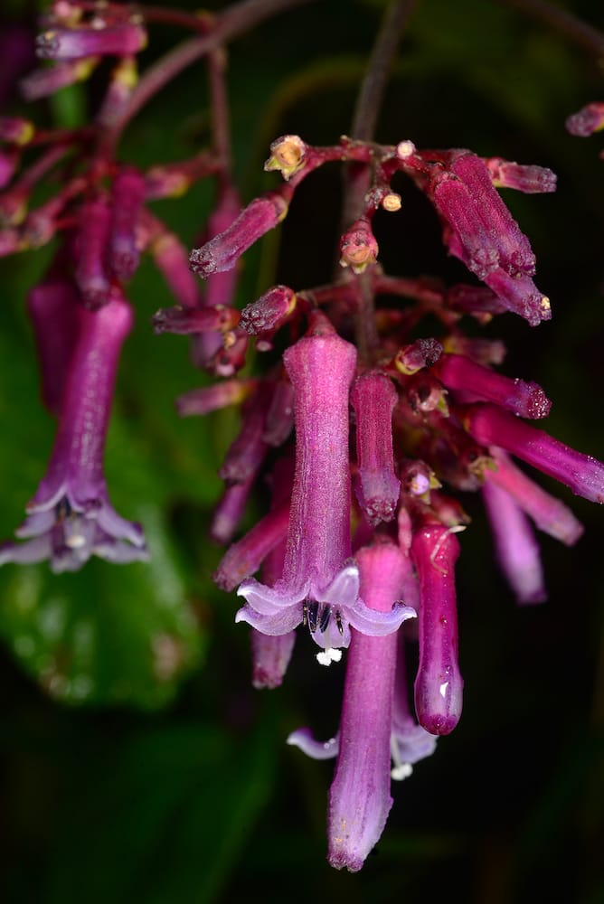 My work focuses on one group of plants from the American tropics, the genus Palicourea in the Rubiaceae. These have a wide range of flower sizes, flower colours, and presentations, so the variation of forms never ends, and most species have showy flowers that are pollinated by hummingbirds, which are beautiful and fascinating. Figuring out the different Palicourea starts by learning about the species in a particular region or country, which is intriguing, like solving a puzzle. And then inspiration comes when you walk out in the forest — and find a species of Palicourea that you, the person who knows them all, have never seen before! I was lucky to find such a species during my graduate research, and it turned me into an addict for finding the next new thing for science. The first of these discoveries was Palicourea spathacea from Costa Rica.