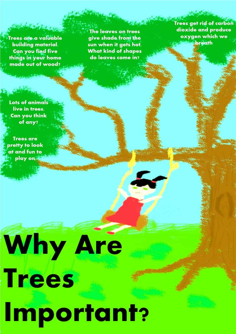 Below I have included a poster designed to teach children some of the reasons in which trees are important as a learning tool that can be used in these lessons. I designed this poster as part of my dissertation entitled ‘Design and evaluation of an outdoor lesson plan to engage primary school children in conservation” and used it at Oxford Brookes University’s Science Bazaar event. At this event I got children to play a matching game: they identified which leaves from a pack belonged to which species of tree. This was to give the trees a name and identity, with the aim to help children to form a stronger connection with the trees and therefore nature.