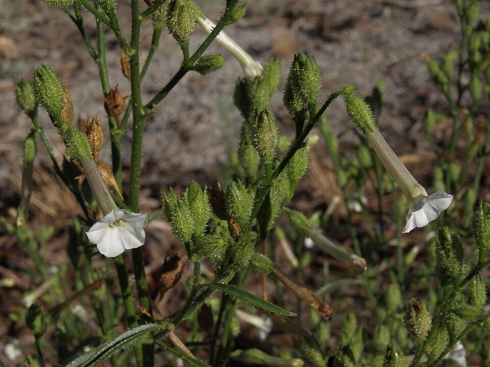 Nicotiana attenuata the plant that Cao has used for his research. Photo by Jim Morefield, Wikicommons.