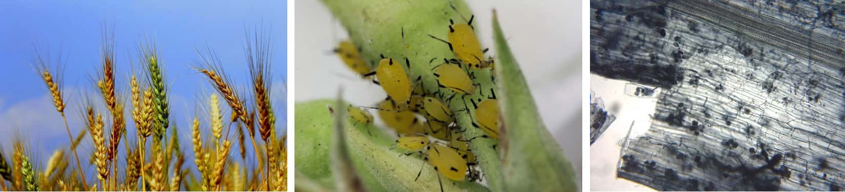 However, Charters and colleagues point out that wheat has been selected for high-yielding above-ground traits, and that this may have selected against below-ground traits such involving AM fungi. Previous studies indicating increased carbon allocation in higher CO2 conditions were done using wild plants. Application of aphids to the wheat plants as a carbon ‘sink’ dramatically reduced the allocation of fixed carbon to the AM fungi. By contrast, allocation of phosphorus from the fungus to the plant was not affected, despite the AM fungi getting a low carbon reward from the plant.
