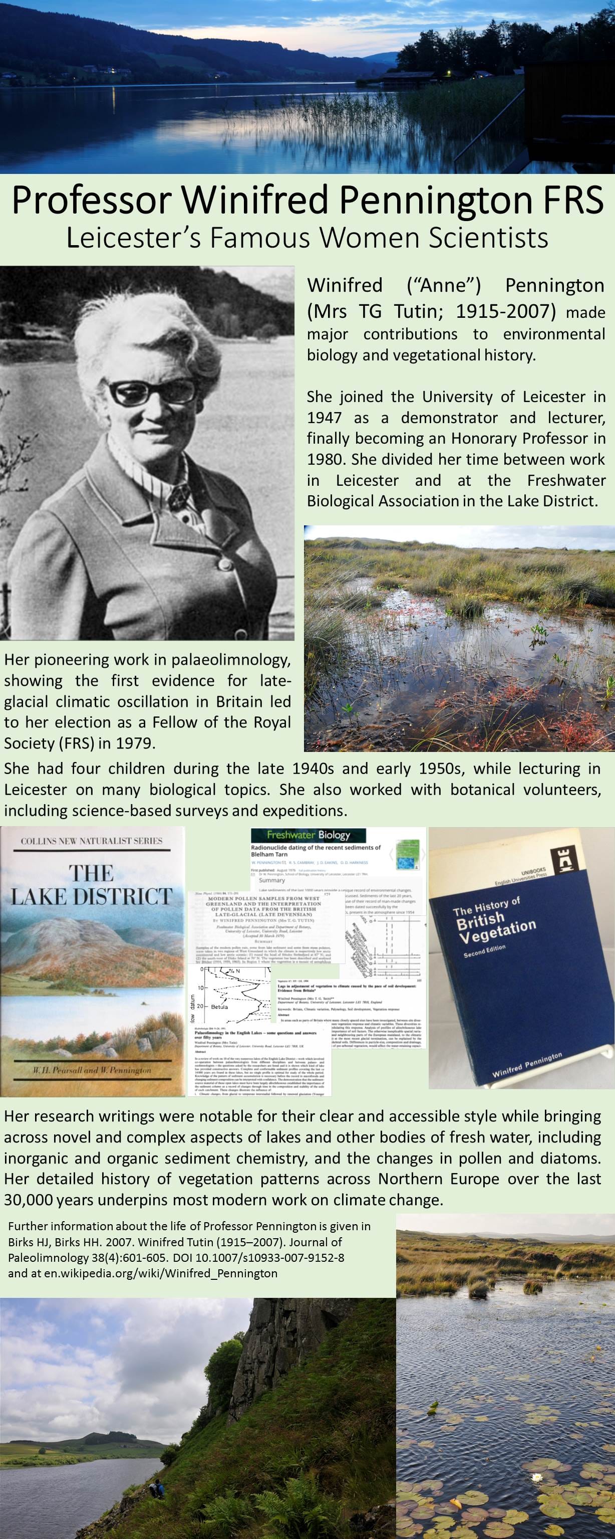 Winifred (“Anne”) Pennington (Mrs TG Tutin; 1915-2007) made major contributions to environmental biology and vegetational history.