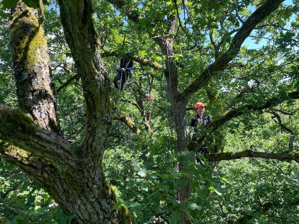 Oaks, for sure. Since we are dependent on collecting the leaves of our research trees from the canopy top, we did climbing training, which enabled us to climb those trees ourselves. We met a wonderful person, Vicki, a professional tree climber and arborist, who introduced us to the world of tree climbing. As I got to an oak tree canopy for the first time, I felt very honoured to be able to see a tree and the whole forest from this perspective. I especially enjoyed the wide canopy and branched structure of oaks, and I really like their coarse bark. To be honest, it feels just like another world up there in the trees.