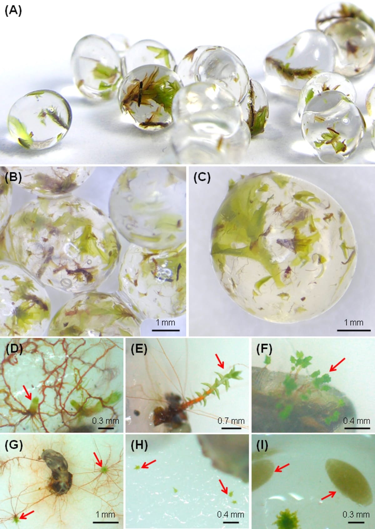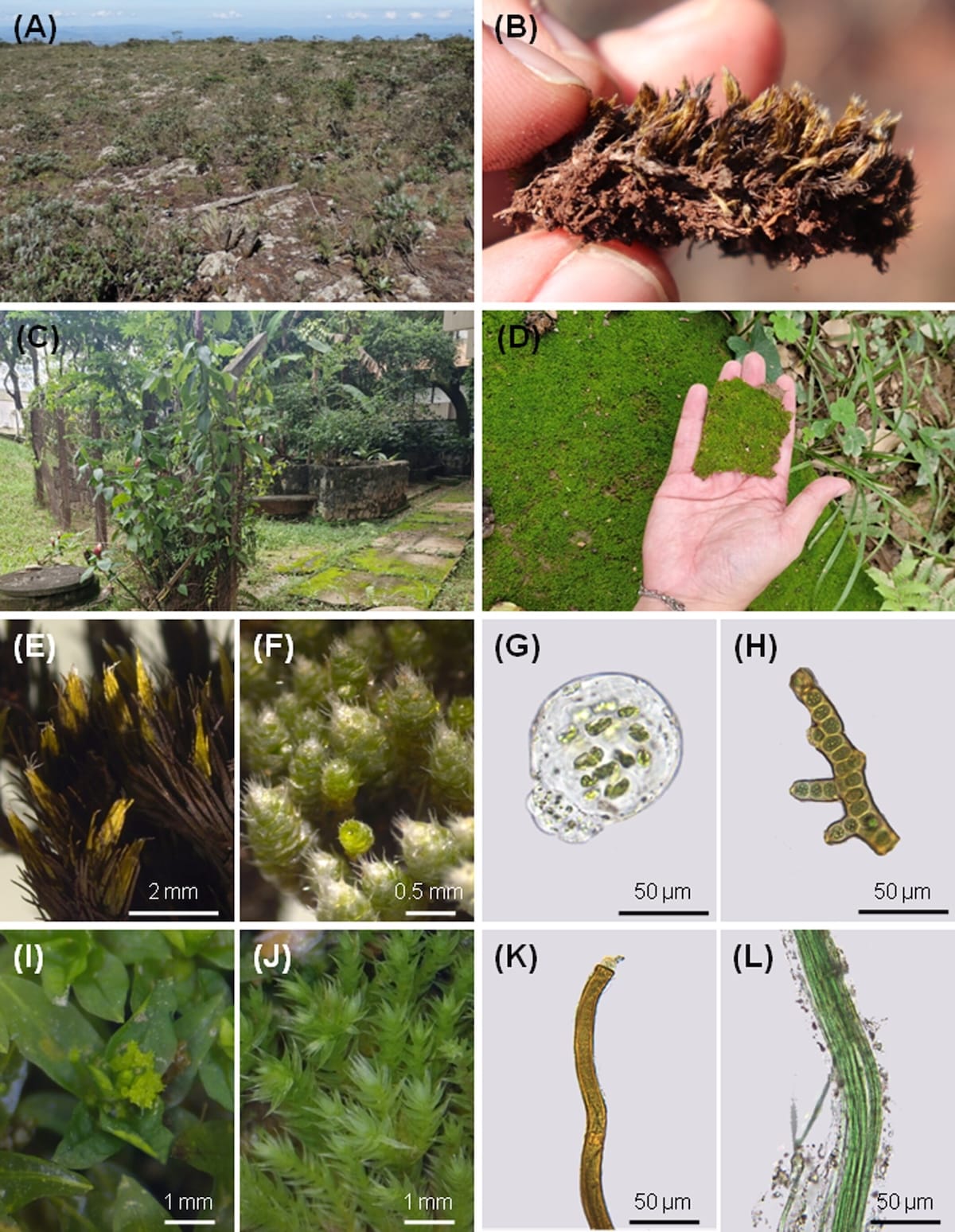 The protocol developed by Oliveira and colleagues involved encapsulating fragments of mosses and their associated organisms in alginate beads enriched with nutrients and starch, producing uniform structures 3-4 mm in diameter. Among the species used were mosses common in open and degraded areas, such as Bryum argenteum and Hyophila involuta, accompanied by algae of the genus Gloeocystis and cyanobacteria such as Scytonema and Microcoleus.