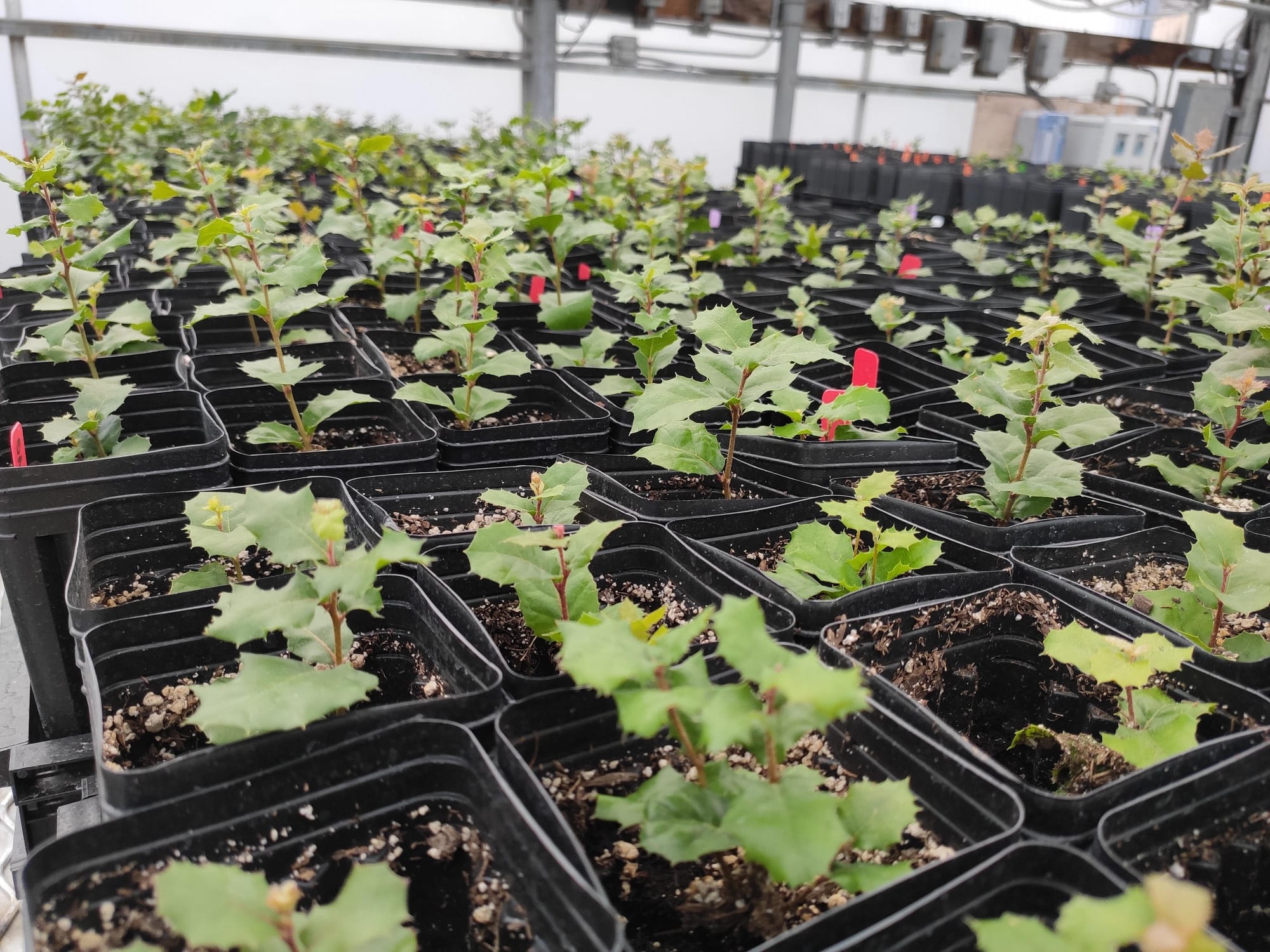 La pareja de científicas está trabajando para entender los detalles sobre la morfología y genética de dos variedades de Quercus agrifolia. Mientras que Quercus agrifolia var. agrifolia tiene hojas glabras, Q. agrifolia var. oxyadenia es reconocible por sus hojas tomentosas. Esta característica en especial hace que las investigadoras sospechen que la variedad oxyadenia sea más tolerante a la falta de agua, algo que esperan confirmar con sus experimentos en el invernadero. Además, con el trabajo genético, las investigadoras podrán determinar si alguna de las variedades tiene marcadores genéticos asociados a resistencia a sequía. Las investigadoras también incluirán individuos de la especie amenazada Quercus engelmannii como parte de sus experimentos ya que la fragmentación y los incendios han disminuido el número poblacional de esta especie. Después de realizar los experimentos de sequía, Flores-Rentería y Jennings llevarán los pequeños árboles de regreso a las comunidades de donde colectaron miles de bellotas. Su investigación será útil para manejar los bosques de encino en tierras Tribales, dice Magee, quien además mencionó que un vivero dirigido por miembros de las Tribus utilizará esta información y a los árboles para restaurar zonas degradadas.