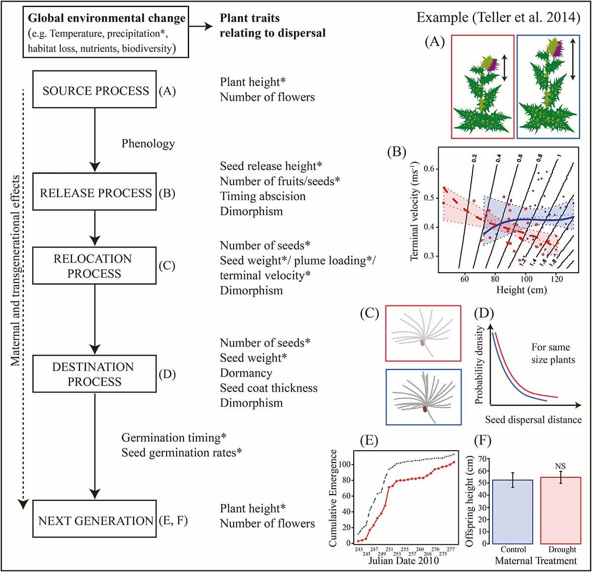 In a recent review published in AoBP, Johnson et al. explore whether rapid changes in seed dispersal traits may modify plant responses to global change. First, they consider evidence for rapid modification of seed dispersal traits, including plant traits, animal disperser traits and changes in external conditions. They discuss the potential mechanisms driving rapid response of dispersal traits, including phenotypic plasticity, epigenetics and rapid evolution. Finally, they propose a path forward to better understand the ways in which seed dispersal may buffer the effects of global ecological change. They conclude that if we combine our empirical understanding of heritable and non-heritable mechanisms of seed dispersal with theoretical and mathematical modelling of dispersal pathways, we are likely to improve predictions and improve our ability to predict further into the future for best- and worst-case scenarios.