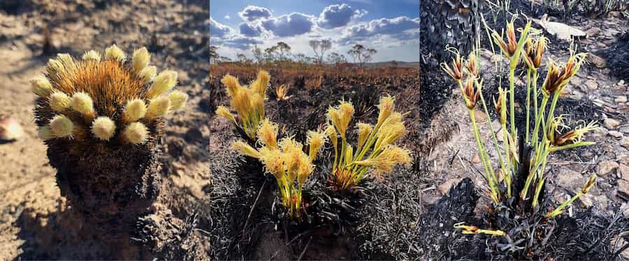Fire does not kill these plants because they have specific resistance mechanisms. Rhynchospora confusa and Bulbostylis paradoxa have a well-developed aboveground caudex, a type of stem whose leaf sheaths remain and protect the buds. On the other hand, Rhynchospora terminalis have a resistant belowground rhizome protected by dead sheaths. What remains a mystery is the physiological mechanism that triggers such fast responses. Are the flower buds already there and only grow after a fire, or do plants produce them from scratch? Which hormones are involved in the process?