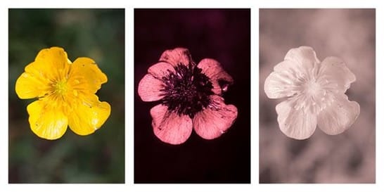 Colour results from the interaction between two equally important components. The first one is the reflection of light wavelengths. You’ve probably heard that white colour is a combination of all colours, and black results from their absence, correct? Well, this is partially true because white surfaces intensely reflect all wavelengths, resulting in the absence of colour. In contrast, reflection from black surfaces is almost negligible, leading to predominant absorption and, thus, the lack of colour. This raises a fundamental question: what determines the colour of a flower? Here comes the second component: the eye of the observer (Figure 1). When we –humans– see a red flower, our trichromatic vision allows us to perceive reflected light at wavelengths between 400 and 700 nm (which represent blue, green, and red, respectively), creating the perception of red. However, to a bee, which has a limited sensitivity to red, that same red flower may appear black. Have you ever imagined seeing from the UV spectrum to red? Well then, lucky are the birds that enjoy this privileged view!