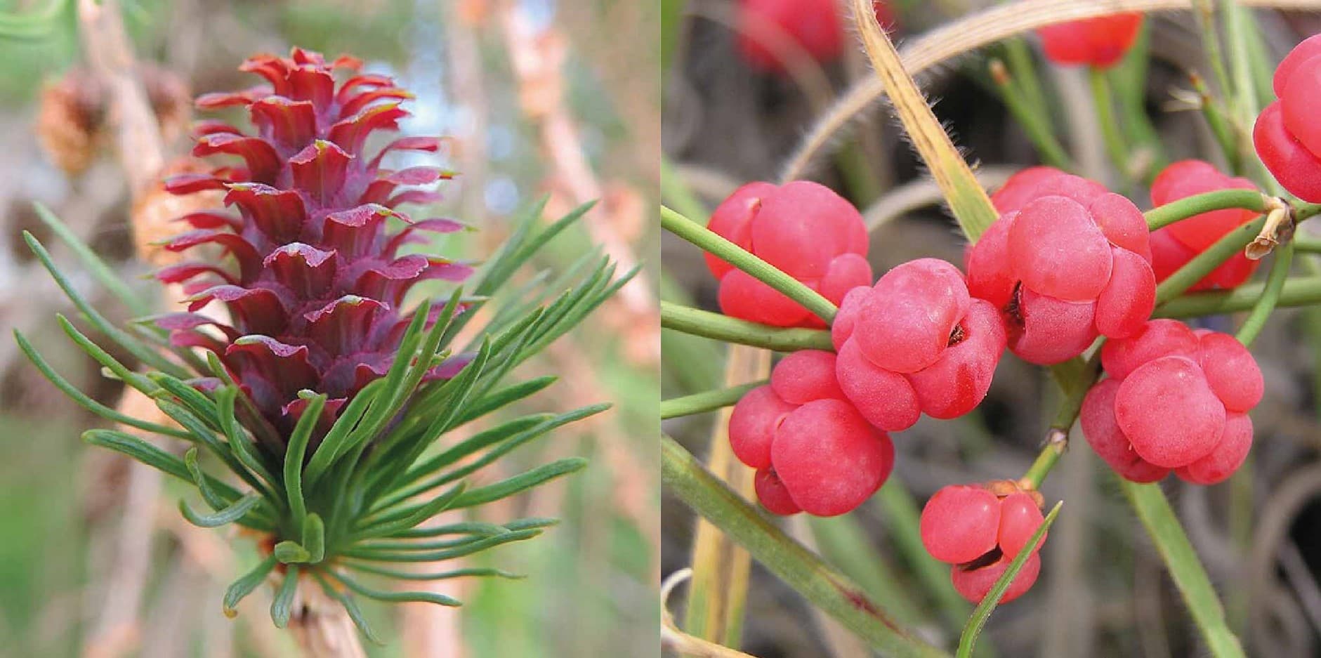 Kellenberger and Glover point out that the colour of the petals must have originated in leaf-like structures meant to protect plant reproductive organs. For instance, in gymnosperms, such as the European larch (Larix decidua) and the seagrape (Ephedra distachya), the seed cones display a striking hue due to the accumulation of red pigments in the scales (Figure 3). Therefore, it is possible that the sterile protective organs of the common ancestor of angiosperms and gymnosperms also already had bright colours.