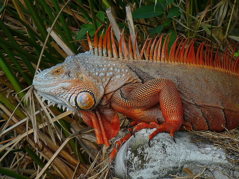 Image credits: Galápagos land iguana from Jimrules42 at en.wikipedia; Green (if a little reddish of hue) iguana from Cary Bass