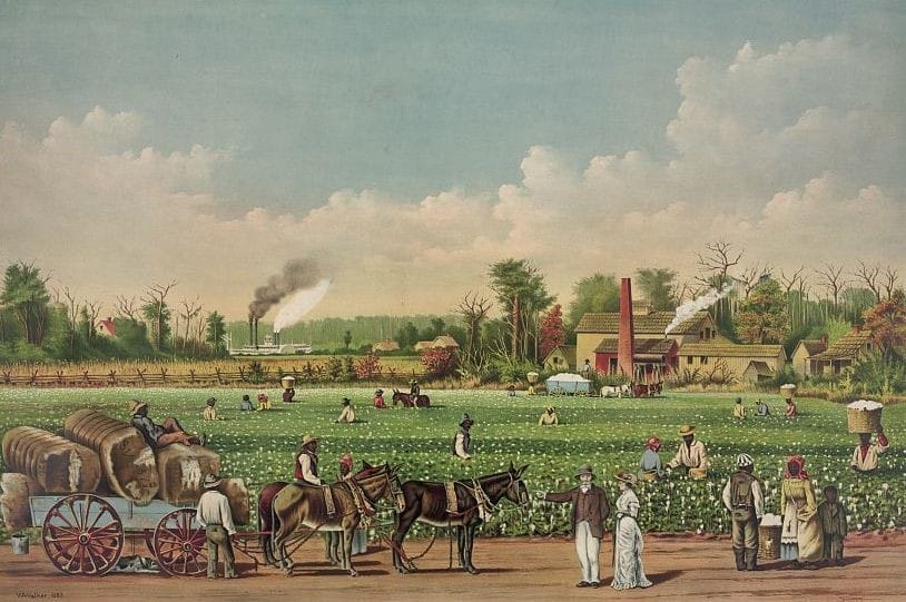 Like tobacco and sugar cane,*** cotton is traditionally grown using the plantation system. Cotton is resource-hungry and its success has relied on a lot of manpower to sow, tend, and harvest the crop. In the past, much of that manpower came from slaves, principally transported to the Americas from Africa.