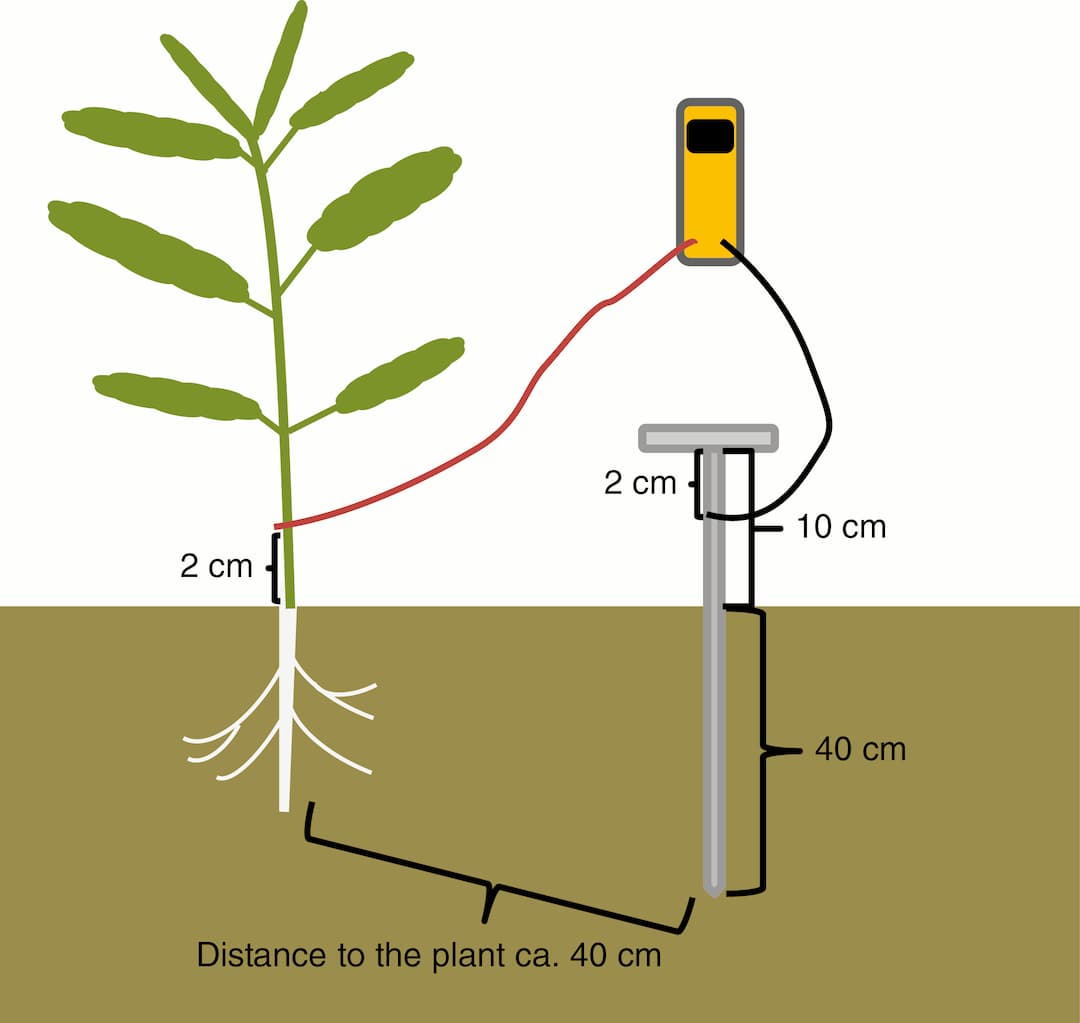 To get around this problem, the team turned to root electrical capacitance. This approach looks at roots as leaky capacitors, so examining electric flow through soil can reveal how plant biomass varies below ground without having to dig up the plant. This technique showed the surprisingly low root biomass of the semi-dwarf hybrids.