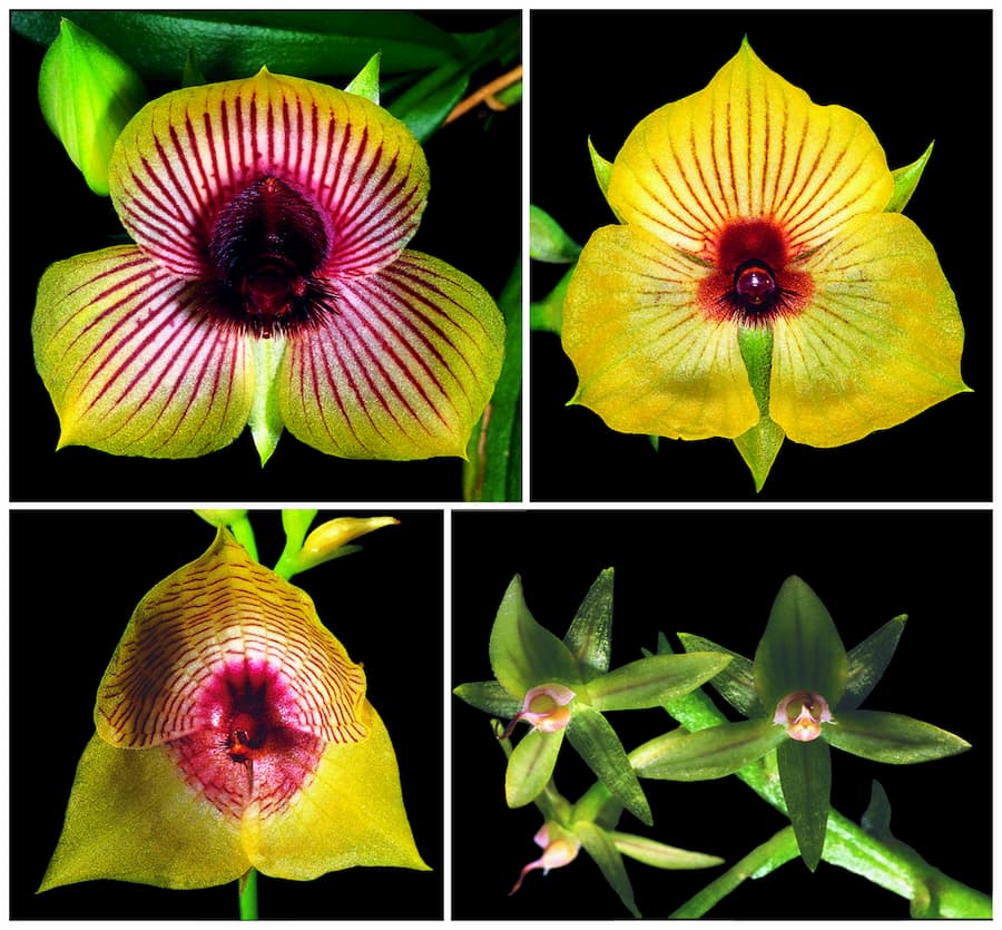 With so many species of Telipogon it’s not surprising that a lot of them look similar. Martel explained there are clues if you have the eye for it. “There are two kinds of Telipogon species. Most species have conspicuous flowers (yellow petals and lip and a dark red central part) and a small group of species with minute flowers which are not colourful. In general, flowers of different Telipogon species can be very similar, but the key factors for species differentiation are those associated with the central part of the flower (callus and column), as those interact directly with the pollinators.”