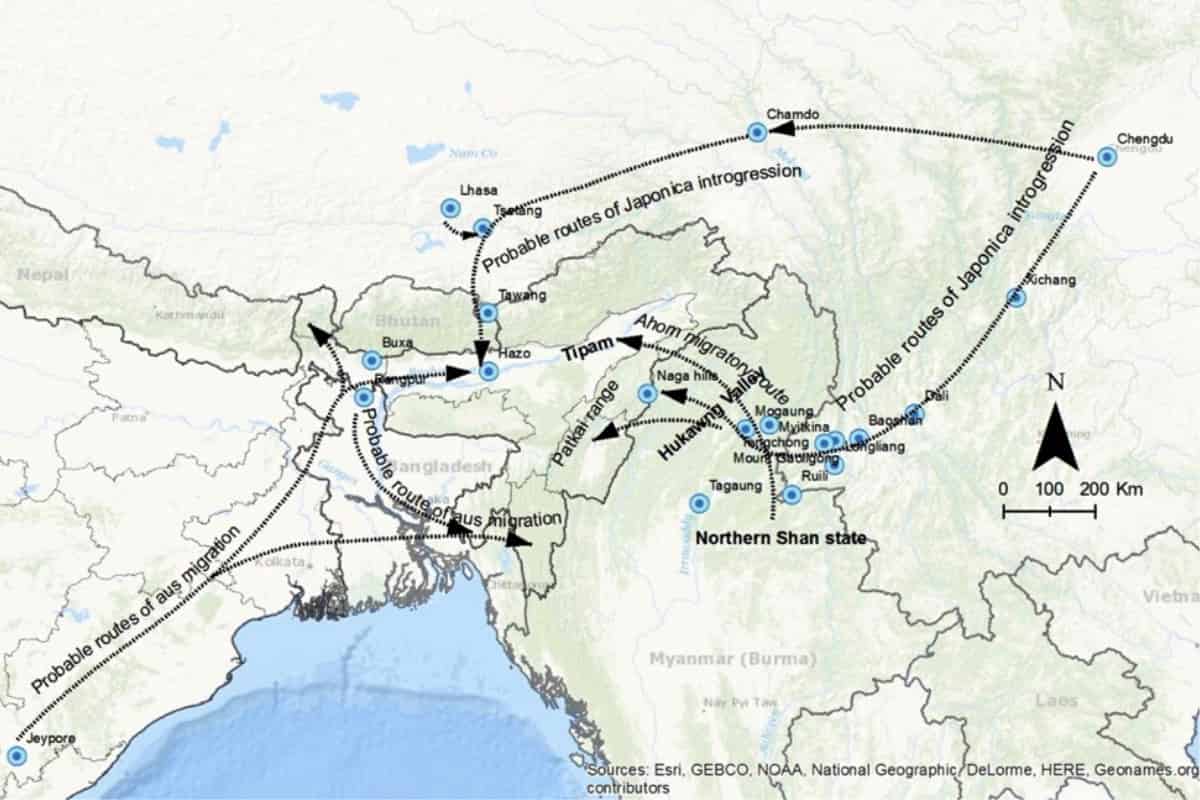 The three centres of rice domestication include Southern China and the Yangtze valley for japonica, Indochina and the Brahmaputra valley for indica, and central India or Bangladesh for aus. Aromatic rice is not confined, but rather well segregated among all these three groups. However, previous studies on aromatic rice are mostly focused on long-grained Basmati type and some high yielding varieties. Very little emphasis has been given on traditional landraces to decipher the mysteries of their origin, domestication and underlying cause of aroma.