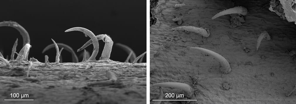 Out of the more than 300 described species of Macaranga, one stands out for having its body covered in tiny, hook-shaped hairs that give it a sandpaper feel to the human touch. Its name is Macaranga trachyphylla, a species endemic to the island of Borneo. Hairs, better called trichomes in botany, have long been recognized as one of the most widespread strategies of physical defence among plants. Yet, those of Macaranga trachyphylla hadn’t received much attention until recently. A group of researchers from Brunei and the UK, authors of the new study, discovered that such a unique feature of these trees serves as a powerful armor against shady caterpillars.