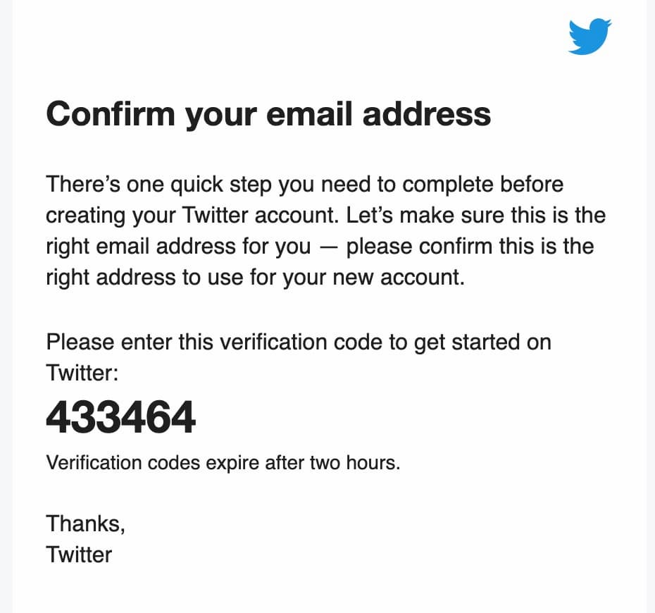 After that you get sent a six digit code to either your email or phone. This is a way that Twitter tries to reduce the number of robots signing up to Twitter.