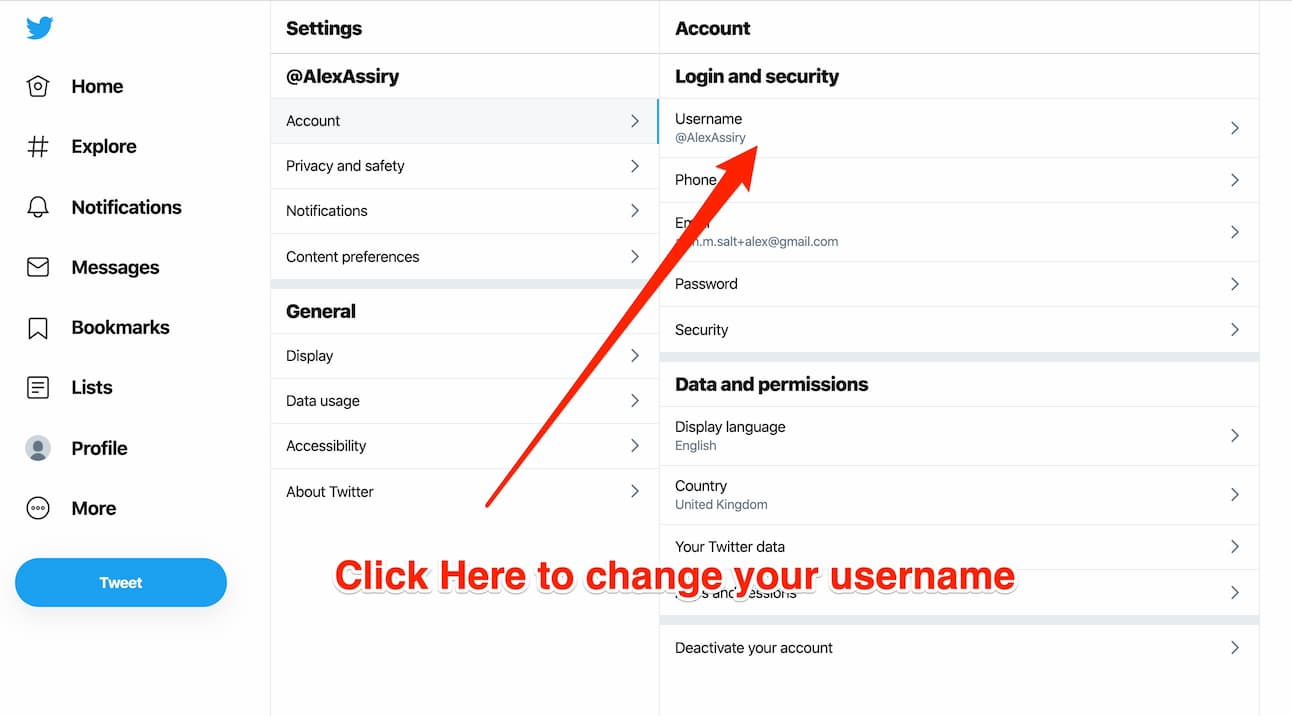 Unhelpfully, in this example, Twitter hasn’t found another AlexAssiry, so I’ve no need to change this username, but you might not be so lucky.