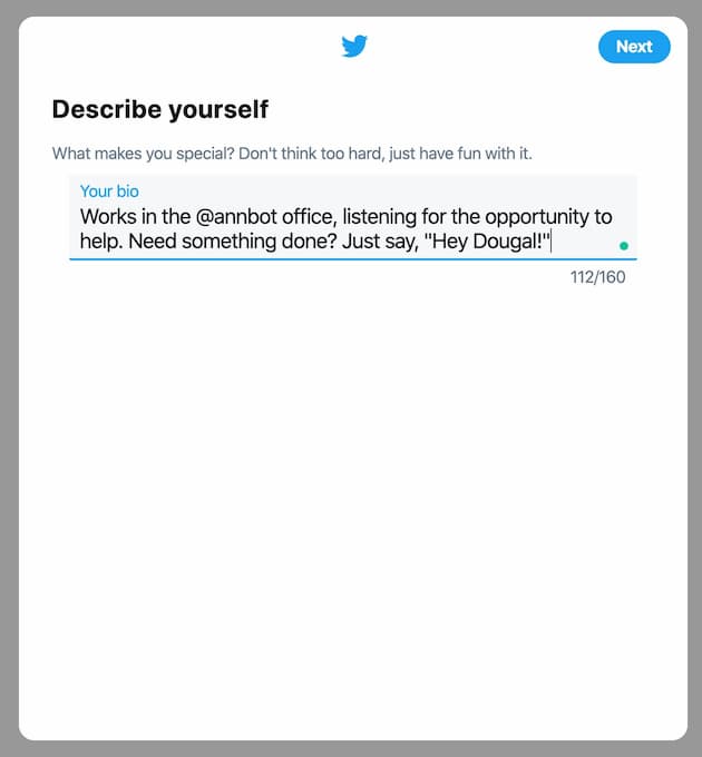 Twitter usually assigns you a bad name these days like @Name7583976. Change that to something that’s more you. This might take some time. I was going to suggest @HelenPollen, if your name was Helen and you’re into pollination, but that’s been taken. To be fair, it’s very unlikely that you fit that criteria, but spare a thought for any Helens reading this who might be feeling freaked out. The reason that changing your name is a good idea is that people running bots and sock puppet accounts rarely do this, so it gives people a bit more confidence that they’re following a person rather than a propaganda tool. If you want to change your name at a later point, you can do this without losing your existing followers (if it is still available).
