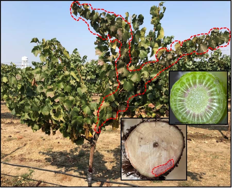 Dye injected into vine xylem water revealed that these preferential flow paths connected, in some cases, individual roots to the leaves and fruit clusters on just a few stems. Sectoring likely contributes to within vine fruit variability. The results of the study provide insights for commercial vineyard management that aims to maximize fruit uniformity at harvest. Specifically, it was concluded that annual pruning may induce sectoring in what is otherwise an integrated plant.