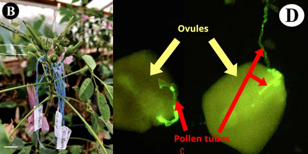 Bianchi and colleagues found that twice as many ovules were penetrated by pollen tubes during compatible crosses than incompatible ones. The pistils from incompatible pollinations were shorter than the ones from successful crosses, making pistil length a distinguishable feature. No fruits were produced from incompatible crosses.